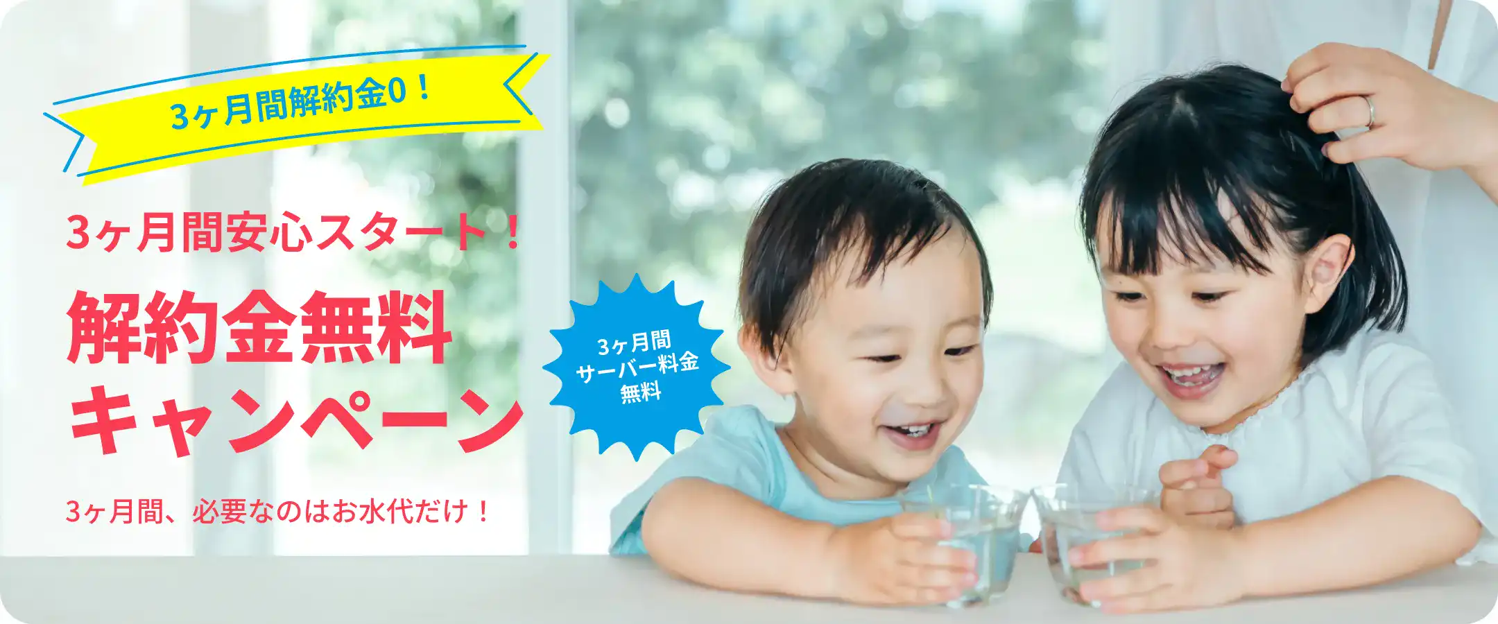 「解約金無料キャンペーン」より新規お申込みいただくと、お申込みからの3ヶ月間は解約金とサーバーレンタル料が無料です!
