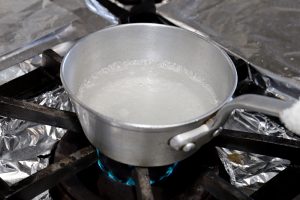 3. 鍋を中火にかけ、沸騰するまで溶かします。溶けたら火を止め粗熱を取ります。