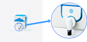 ふじざくら命水のバッグインボックスにはコック付きの注水口がついているため、天然水バッグが入った箱から注水口を引き出すだけで簡単にお水を使うことができます。