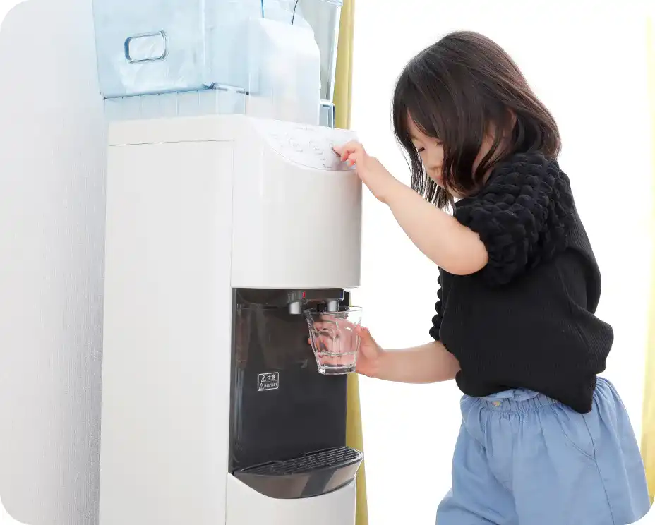 ウォーターサーバーの通水部やタンクを85℃の高温水が循環し、サーバー内部を衛生的に保ちます。