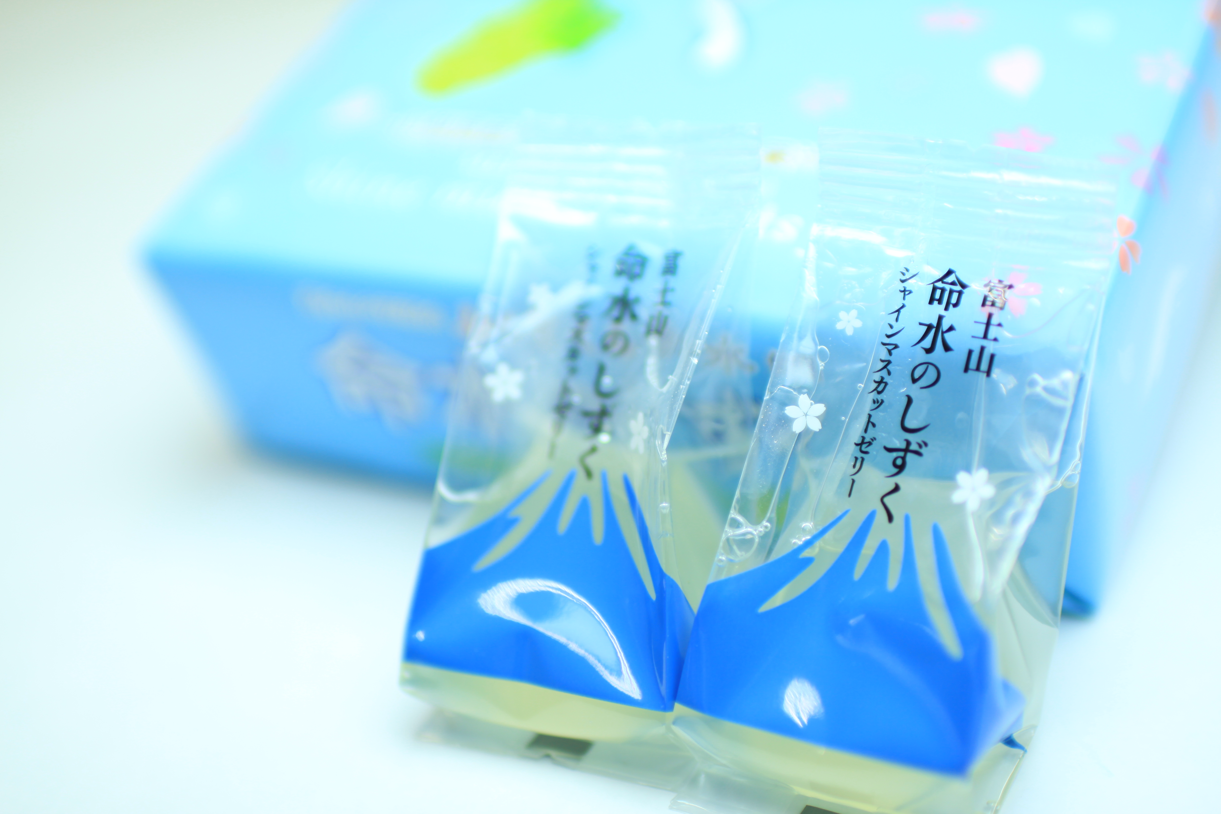 富士山の天然水「ふじざくら命水」と山梨県産のシャインマスカット果汁を使用した贅沢なゼリー「命水のしずく」が、この度パッケージをリニューアルして登場しました!新パッケージは水をイメージしたさわやかなデザインで、富士山の雪解け水を思わせます。